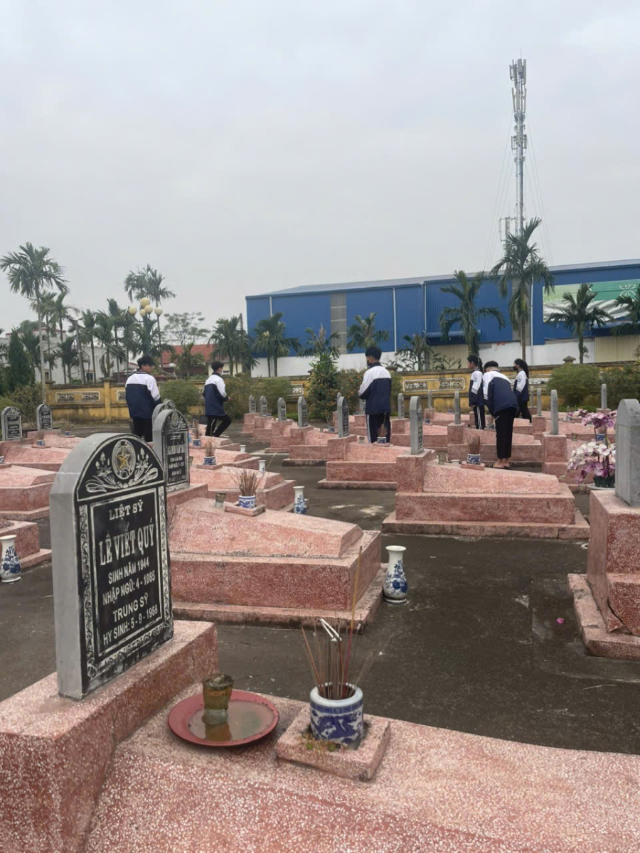 Các thầy cô và các bạn học sinh THCS Nghĩa Sơn tổ chức quét dọn và thắp hương tưởng niệm các vị anh hùng đã hy sinh trong sự nghiệp bảo vệ Tổ quốc